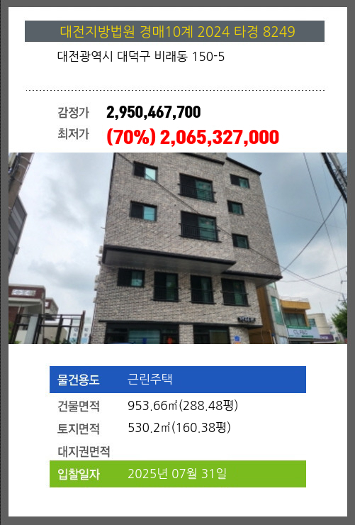 대덕주택경매 대덕구 비래동 150-5 №2024 타경 8249