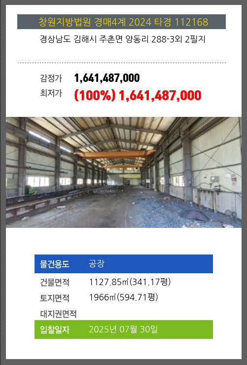 김해공장경매 김해시 주촌면 양동리 288-3외 2필지 №2024 타경 112168