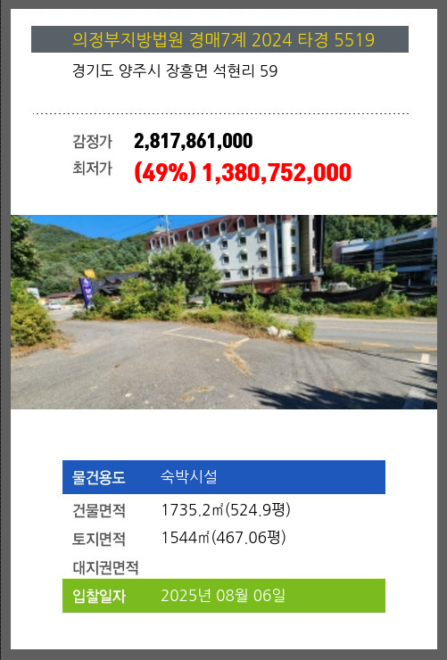 양주숙박시설경매 양주시 장흥면 석현리 59 №2024 타경 5519