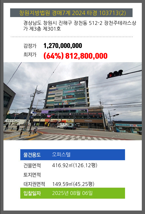 본건은 경상남도 창원시 진해구 장천동 512-2 장천주테라스상가 제3층 제301호