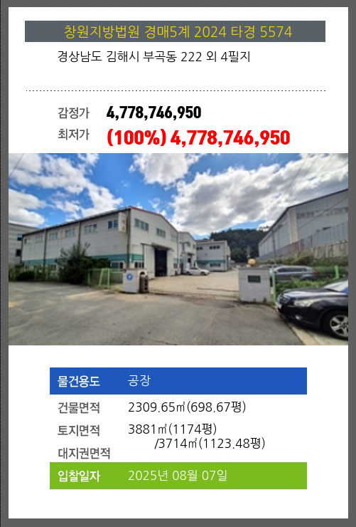김해공장경매 김해시 부곡동 222 외 4필지 №2024 타경 5574