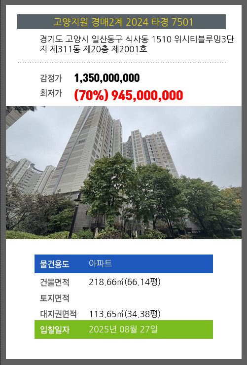 본건은 경기도 고양시 일산동구 식사동 1510 위시티블루밍3단지 제311동 제20층 제2001호