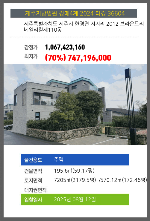 제주주택경매 제주시 한경면 저지리 2012 브라운트리베일리힐제110동 №2024 타경 36604