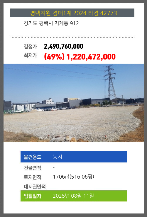 평택농지경매 평택시 지제동 912 №2024 타경 42773