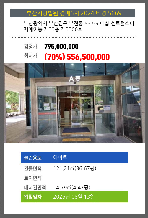 본건은 부산광역시 부산진구 부전동 537-9 더샵 센트럴스타 제에이동 제33층 제3306호