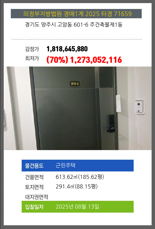 양주주택경매 양주시 고암동 601-6 주건축물제1동 №2025 타경 71659