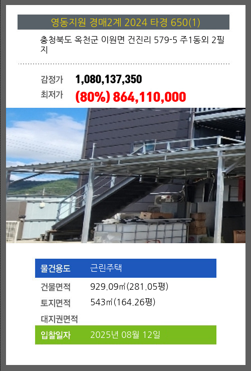 본건은 충청북도 옥천군 이원면 건진리 579-5 주1동외 2필지