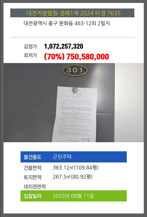 본건은 대전광역시 중구 문화동 463-12외 2필지