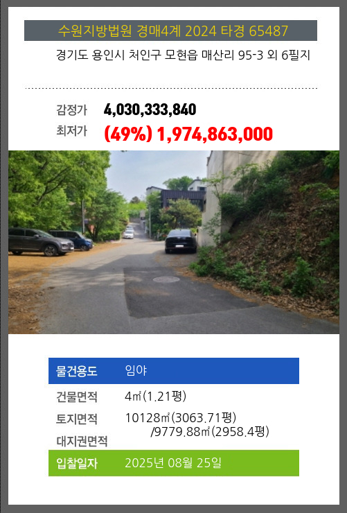 | 용도 | 임야 | 채권자 | 성** | 감정가 | 4,030,333,840 |