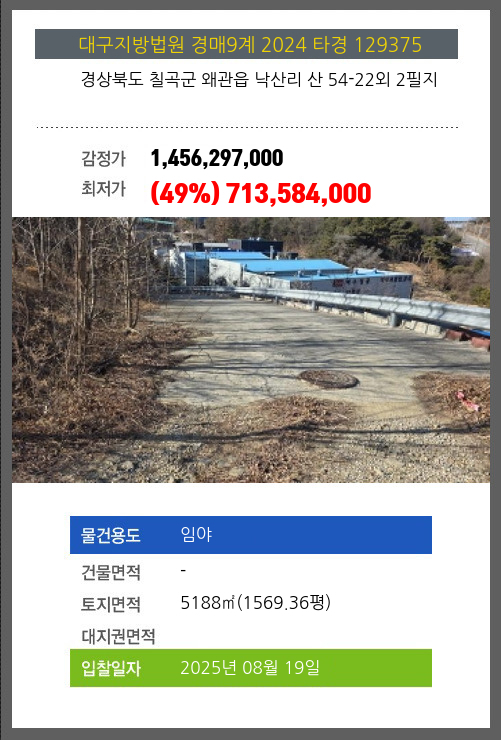 | 소재지 | [지번] 경상북도 칠곡군 왜관읍 낙산리 산 54-22외 2필지 | ||||