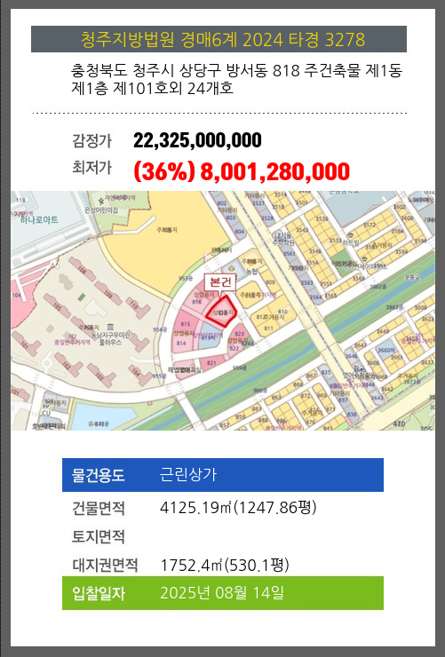 청주상가경매 청주시 상당구 방서동 818 주건축물 제1동 제1층 제101호외 24개호 №2024 타경 3278