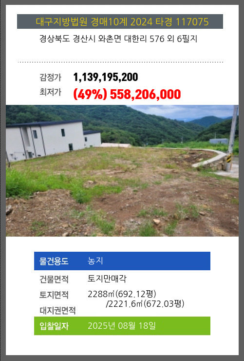 본건은 경상북도 경산시 와촌면 대한리 576 외 6필지