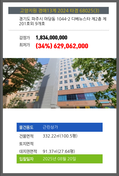 파주상가경매 파주시 야당동 1044-2 디베뉴스타 제2층 제201호외 9개호 №2024 타경 68025(3)