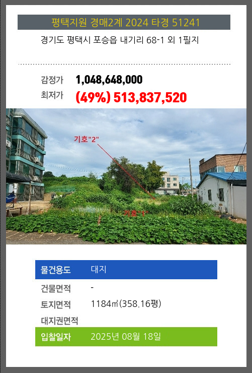 | 소재지 | [지번] 경기도 평택시 포승읍 내기리 68-1 외 1필지 | ||||