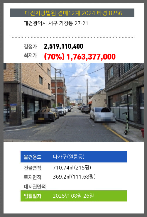 건물면적 710.74㎡ (215평) 채무자 김** 최저가 (70%) 1,763,377,000