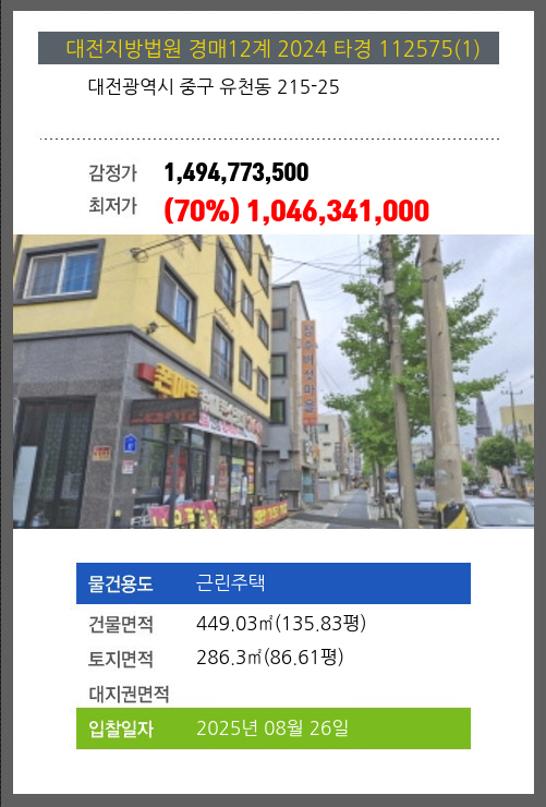 | 신건 | 2025-07-22 | 1,494,773,500 | 유찰 |