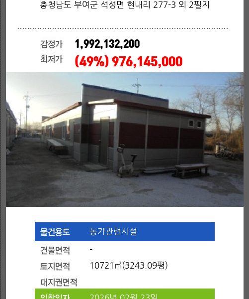 | 용도 | 공장 | 채권자 | 중** | 감정가 | 5,671,665,800 |