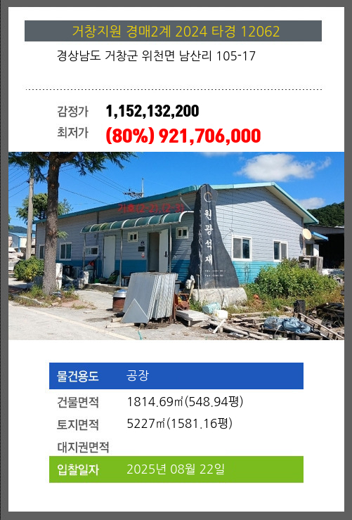 거창공장경매 거창군 위천면 남산리 105-17 №2024 타경 12062