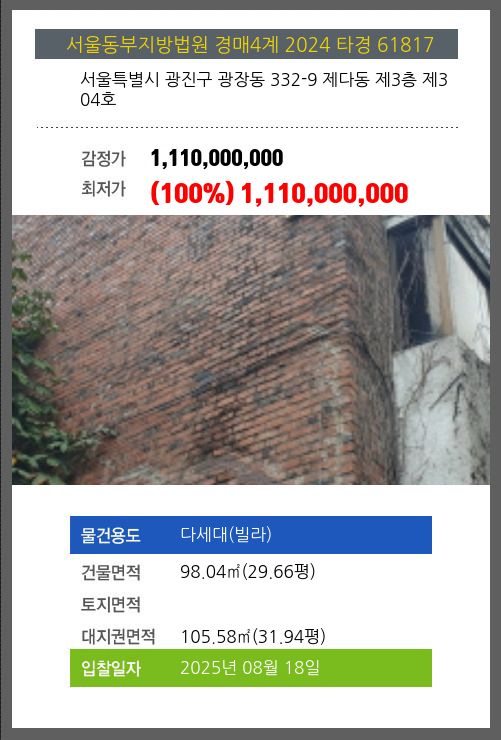 본건은 서울특별시 광진구 광장동 332-9 제다동 제3층 제304호