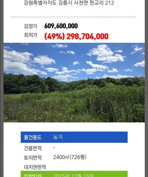 강릉농지경매 강릉시 강문동 12-1 №2024 타경 52139