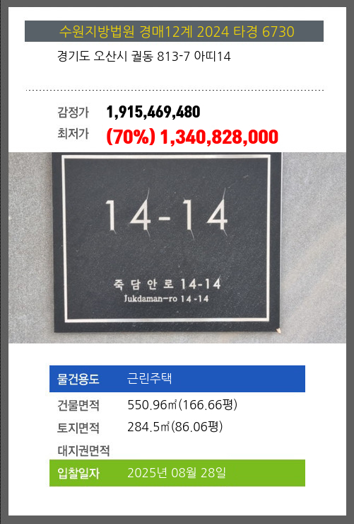 | 용도 | 근린주택 | 채권자 | 수** | 감정가 | 1,915,469,480 |
