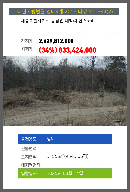 금남임야경매 금남면 대박리 산 55-4 №2019 타경 110834(2)