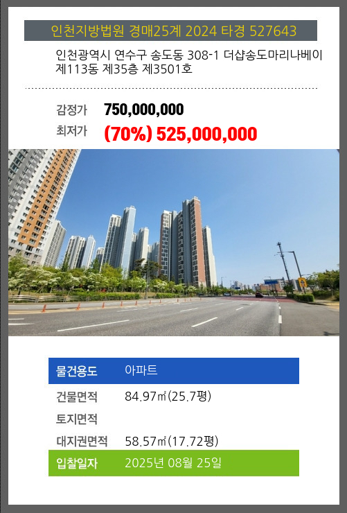 본건은 인천광역시 연수구 송도동 308-1 더샵송도마리나베이 제113동 제35층 제3501호