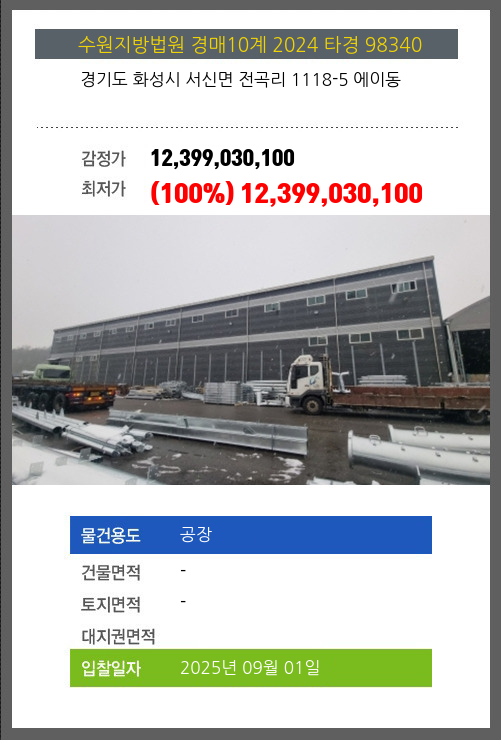 | 용도 | 공장 | 채권자 | 케** | 감정가 | 12,399,030,100 |