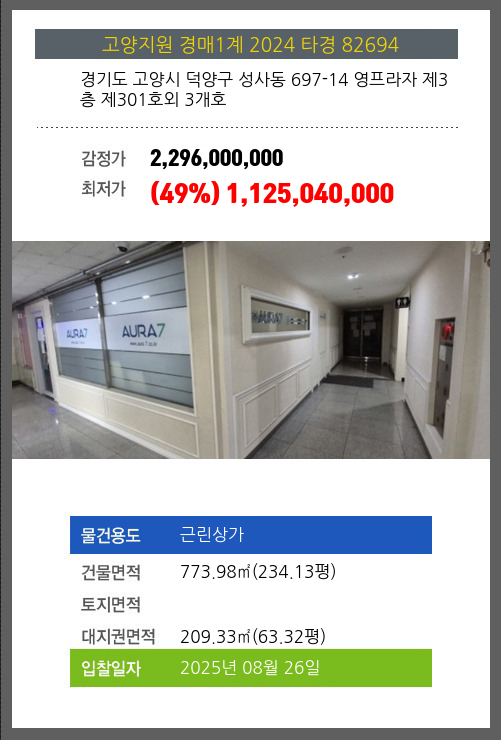 고양상가경매 고양시 덕양구 성사동 697-14 영프라자 제3층 제301호외 3개호 №2024 타경 82694