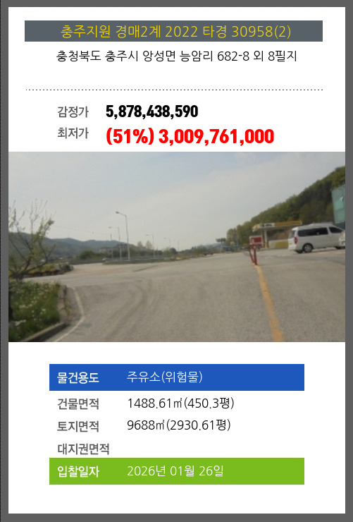 | 용도 | 주유소(위험물) | 채권자 | 서** | 감정가 | 5,878,438,590 |