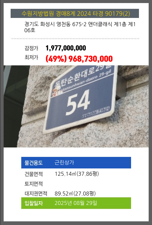 본건은 경기도 화성시 영천동 675-2 앤더클래식 제1층 제106호