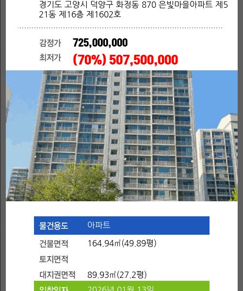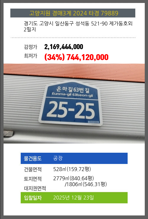 고양공장경매 고양시 일산동구 성석동 521-90 제가동호외 2필지 №2024 타경 79889