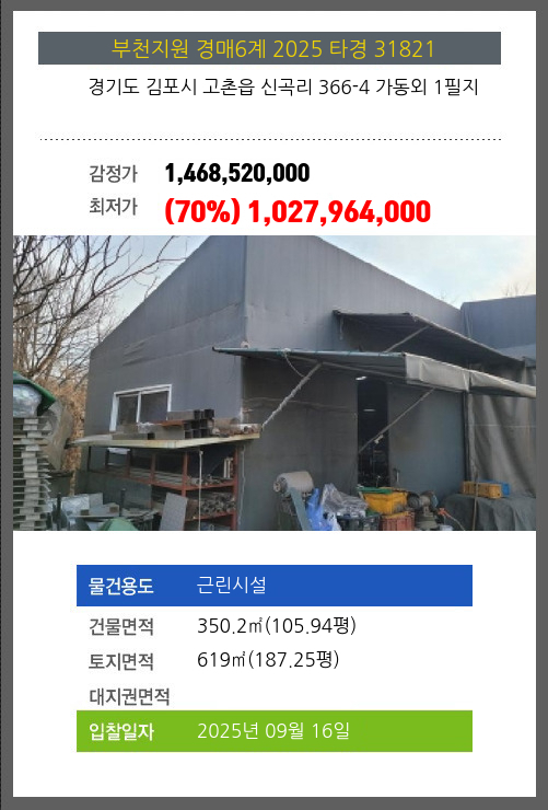 김포시설경매 김포시 고촌읍 신곡리 366-4 가동외 1필지 №2025 타경 31821