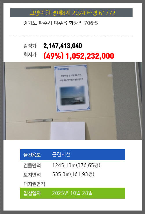 파주시설경매 파주시 파주읍 향양리 706-5 №2024 타경 61772