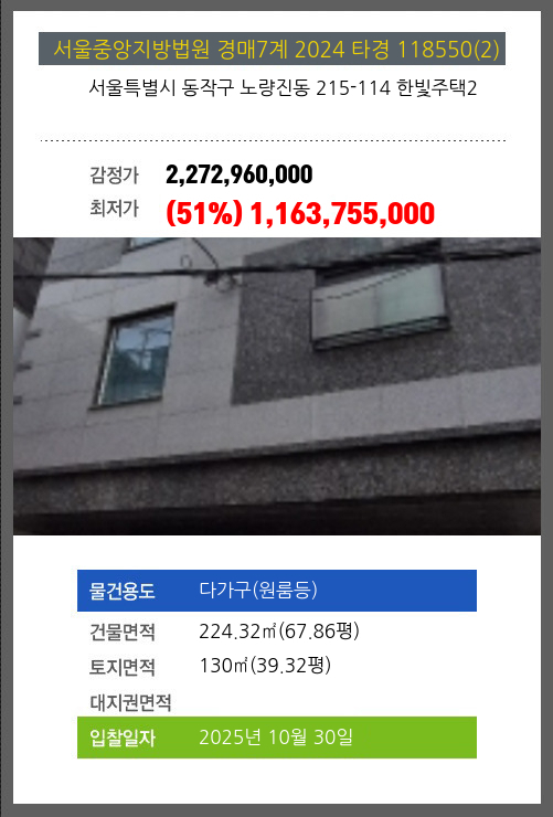 동작다가구(원룸등)경매 동작구 노량진동 215-114 한빛주택2 №2024 타경 118550(2)