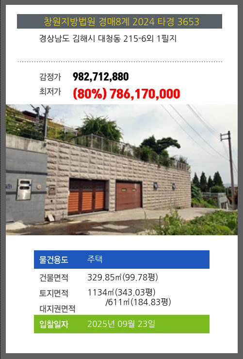 | 소재지 | [지번] 경상남도 김해시 대청동 215-6외 1필지 [도로명 주소] 경상남도 김해시 계동로129번길 11-1외 1필지 |