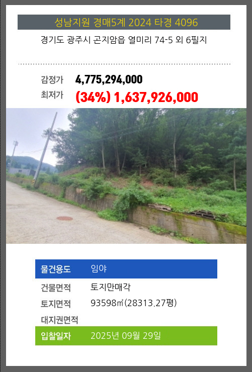 광주임야경매 광주시 곤지암읍 열미리 74-5 외 6필지 №2024 타경 4096