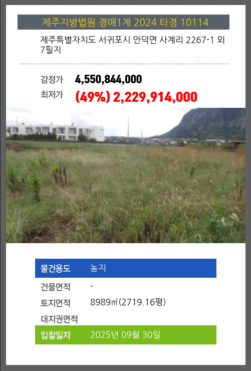 서귀포농지경매 서귀포시 안덕면 사계리 2267-1 외 7필지 №2024 타경 10114