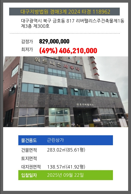 본건은 대구광역시 북구 금호동 817 리버팰리스주건축물제1동 제3층 제300호