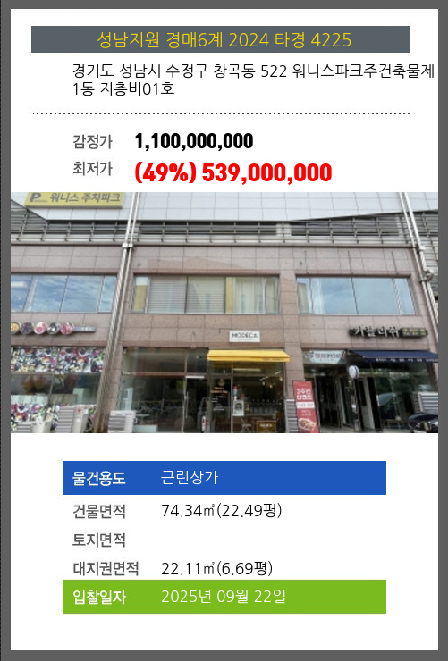 | 신건 | 2025-03-31 | 1,100,000,000 | 유찰 |