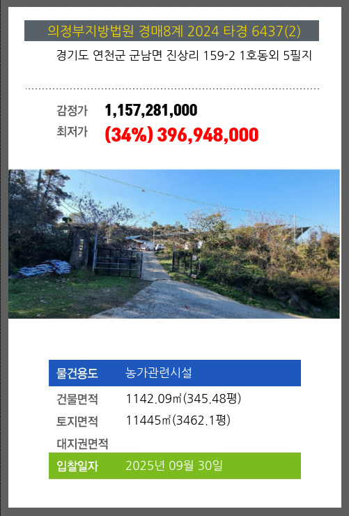 연천농가관련시설경매 연천군 군남면 진상리 159-2 1호동외 5필지 №2024 타경 6437(2)