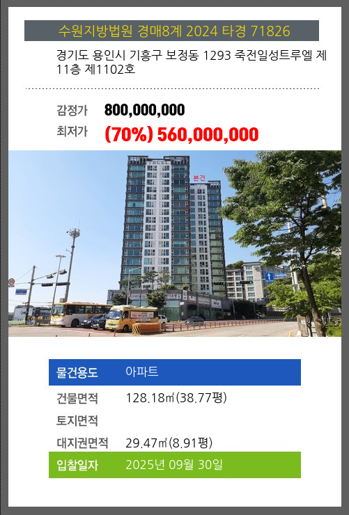 본건은 경기도 용인시 기흥구 보정동 1293 죽전일성트루엘 제11층 제1102호