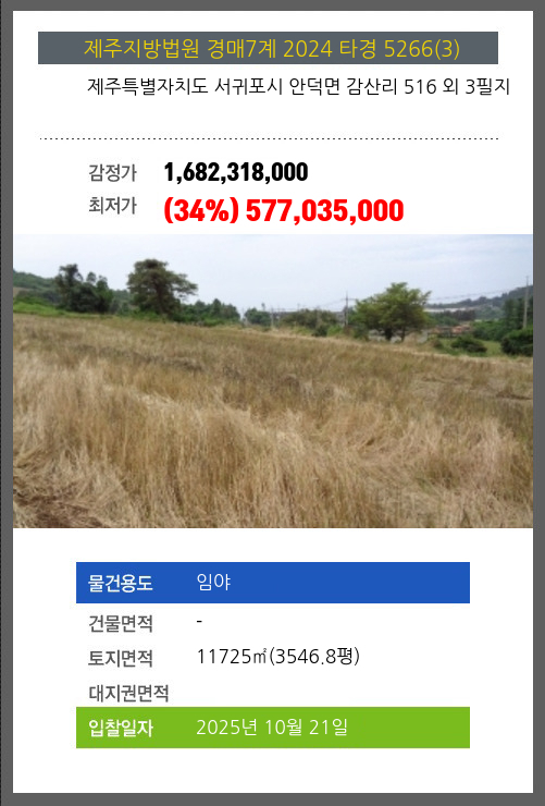 본건은 제주특별자치도 서귀포시 안덕면 감산리 516 외 3필지