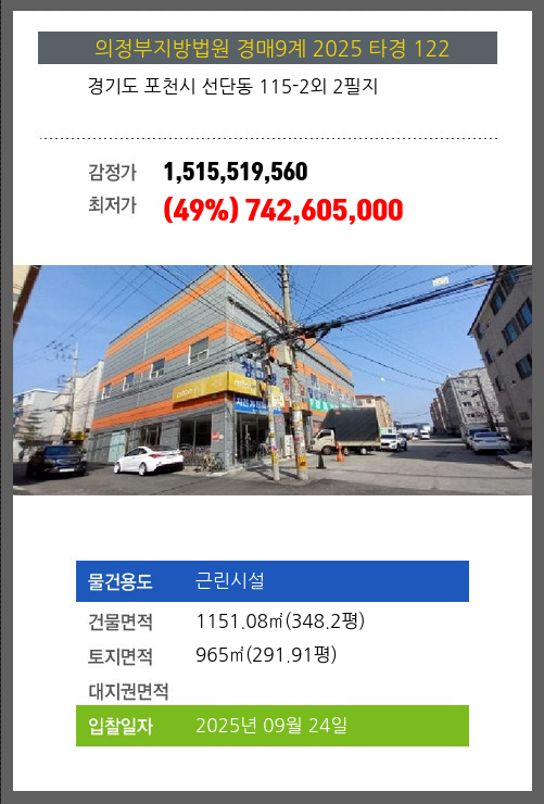 포천시설경매 포천시 선단동 115-2외 2필지 №2025 타경 122