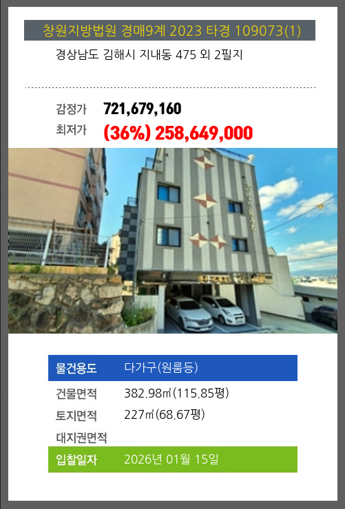 김해다가구(원룸등)경매 김해시 지내동 475 외 2필지 №2023 타경 109073(1)