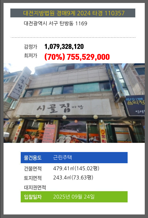 서주택경매 서구 탄방동 1169 №2024 타경 110357