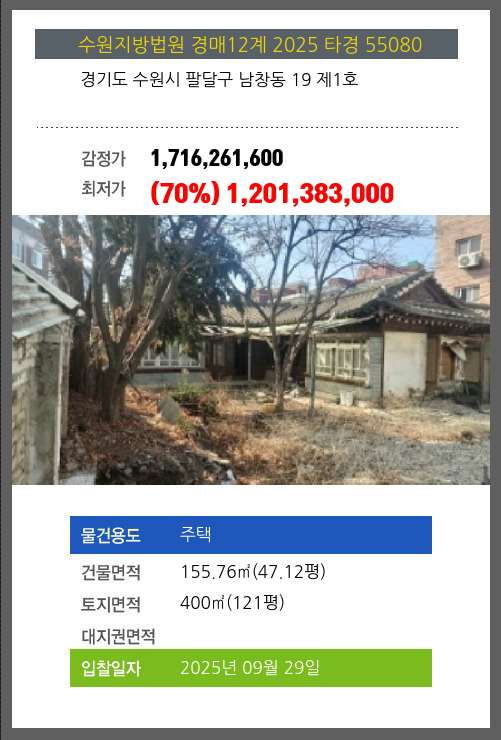 | 신건 | 2025-08-28 | 1,716,261,600 | 유찰 |