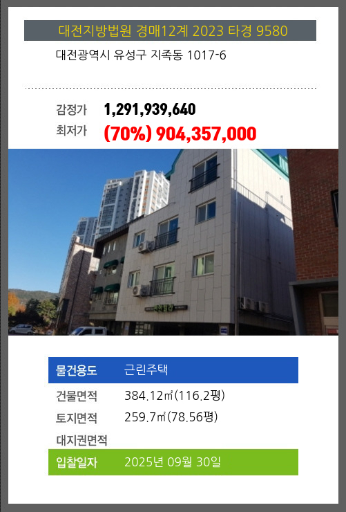 유성주택경매 유성구 지족동 1017-6 №2023 타경 9580