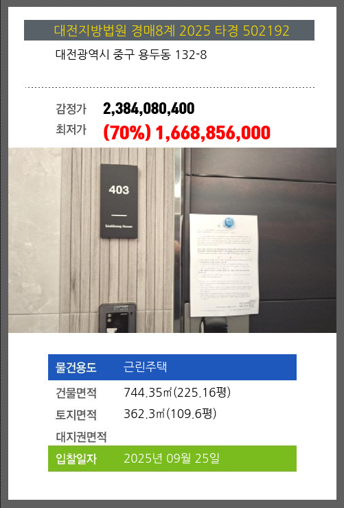 중주택경매 중구 용두동 132-8 №2025 타경 502192