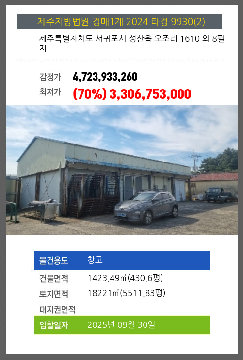 서귀포창고경매 서귀포시 성산읍 오조리 1610 외 8필지 №2024 타경 9930(2)